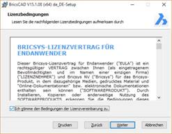 Akzeptieren Sie die Lizenzvereinbarung von Bricsys und klicken Sie auf Weiter.